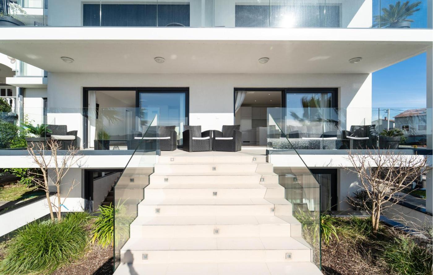 Two-Bedroom Apartment. Boasting a private entrance, this air-conditioned apartment includes 1 living room, 2 separate bedrooms and 2 bathrooms with a shower and a hairdryer. In the well-fitted kitchen, guests will find a refrigerator, a dishwasher, kitchenware and an oven. The spacious apartment offers a washing machine, a tea and coffee maker, a dining area as well as a terrace with sea views. The unit has 2 beds.